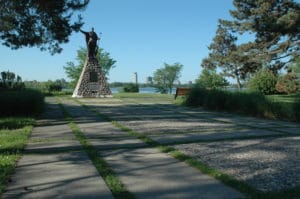 Vue vers l’agrandissement de la placette située à proximité du monument Jean-