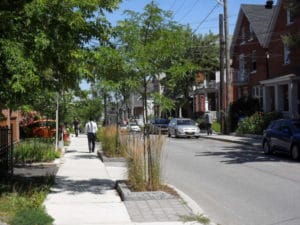 Aménagement piétonnier le long de la rue Champlain.
