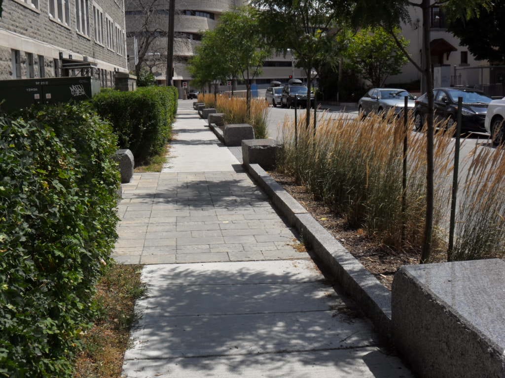Vue des aménagements piétonniers en direction du Musée de l’Histoire.